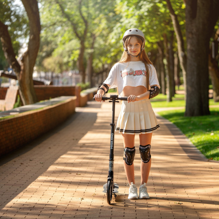 Міський самокат Miqilong Beagle поєднує в собі легкість, зручність та набір основних функцій, необхідних для комфортного повсякденного використання. Розрахований на користувачів зростом до 170 см та вагою до 100 кг. Завдяки вигнутій формі деки та низькому центру тяжіння модель Beagle чудово керується і буде максимально комфортною і для дітей, і для дорослих. Великі PU колеса легко подолають більшість нерівностей асфальту, а система амортизації на передньому колесі зробить їзду максимально комфортною.