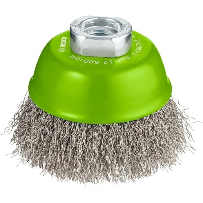 Чашкова щітка Bosch Professional 75 мм із дротом 0.5 мм — надійний інструмент для грубого очищення металевих поверхонь, видалення іржі, фарби та нагару.