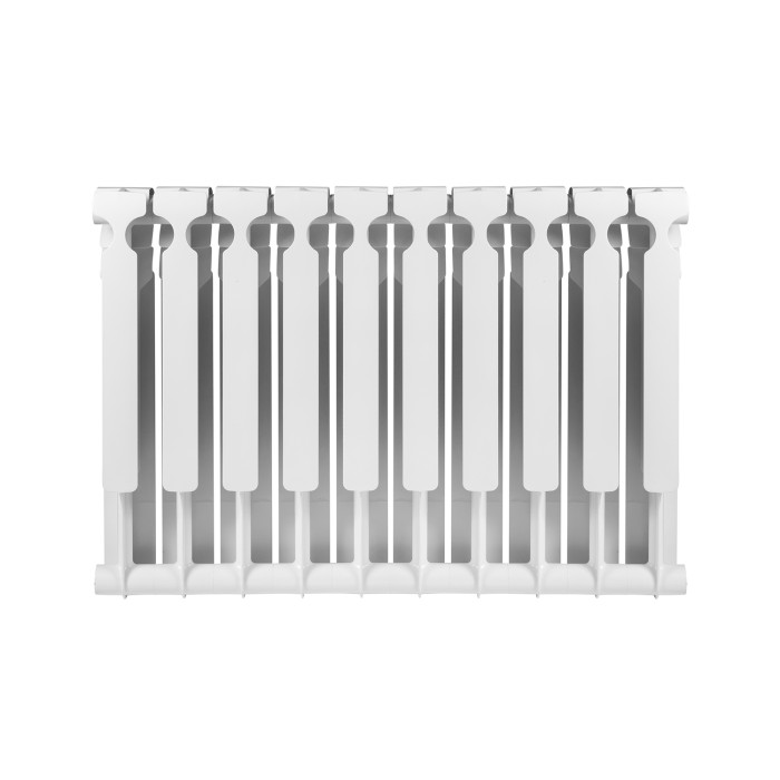 Радіатор виготовлений з біметалу — поєднання сталі та алюмінію, що надає йому відмінні характеристики міцності і тепловіддачі. Зовнішній вигляд радіатора виконаний в білому кольорі, що дозволяє йому легко вписатися в будь-який інтер'єр і підходити до різних стилів декору.