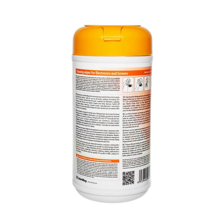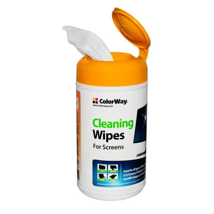 Серветки ColorWay для чищення екранів, моніторів, ноутбуків, телевізорів, смартфонів, комп"ютерів, периферії та іншої офісної та домашньої електроніки. Призначені для вологого чищення сильних забруднень, що в'їдаються плям, потертостей, пилу та інших плям різного ступеня забрудненості.