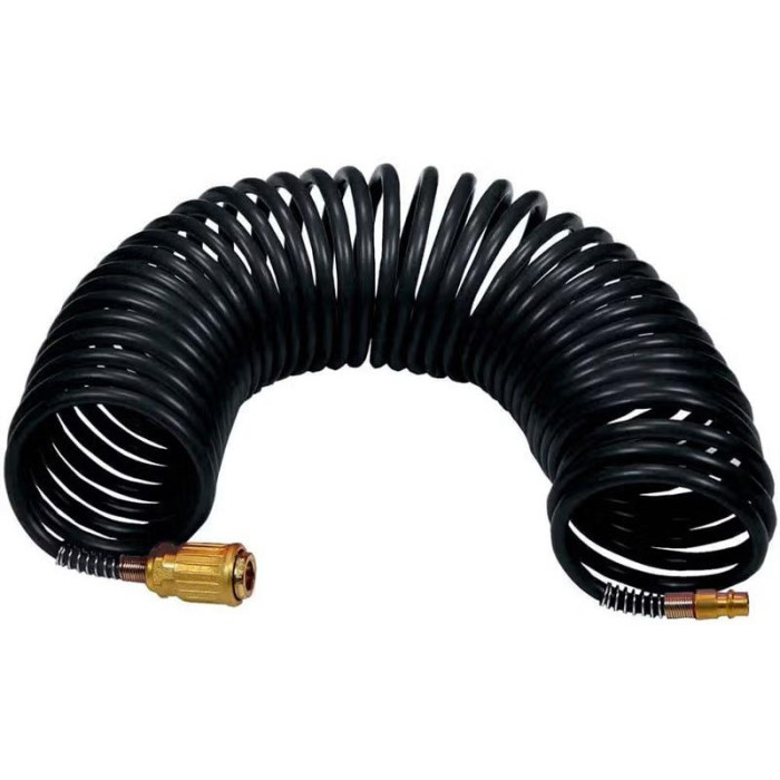 Пневматичний шланг Stanley для підключення пневмоінструменту до компресора. Спіральна конструкція автоматично стягується після роботи, економить місце й запобігає заплутуванню. Довжина 10 м та невелика вага забезпечують зручність і маневровість у майстерні, гаражі чи сервісі.