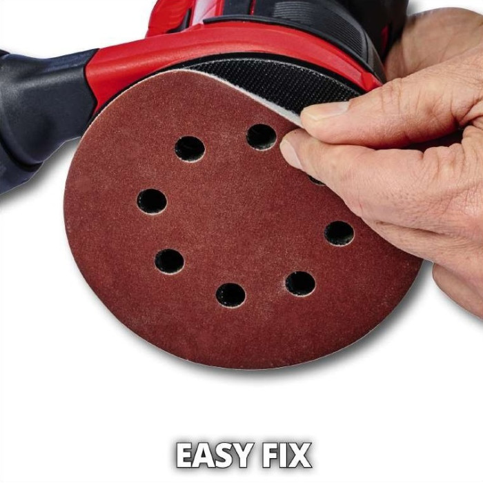 Акумуляторна ексцентрикова шліфувальна машина Einhell TE-RS 18 Li Kit являє собою високоякісний, потужний інструмент, який є відмінним вибором для шліфування великих поверхонь дерева, пластмаси і металу. Шліфмашина є пристроєм сімейства Einhell Power X-Change. Акумулятор і зарядний пристрій Power X-Change можуть використовуватися для всіх пристроїв сімейства Power X-Change. Завдяки електронному регулюванню швидкості, шліфувальна потужність може бути точно відрегульована для роботи з різними матеріалами.