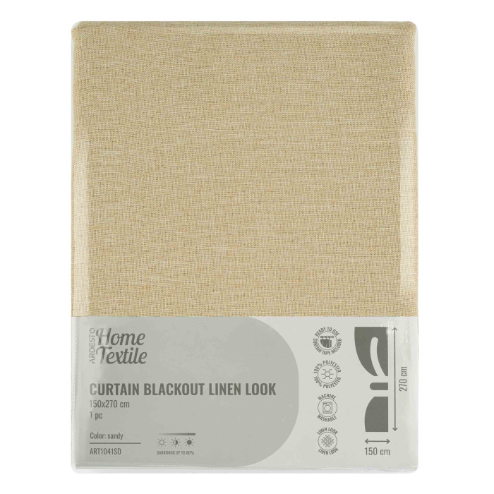 Штора ARDESTO 150х270см, блекаут рогожка, 100% поліестер, пісочний