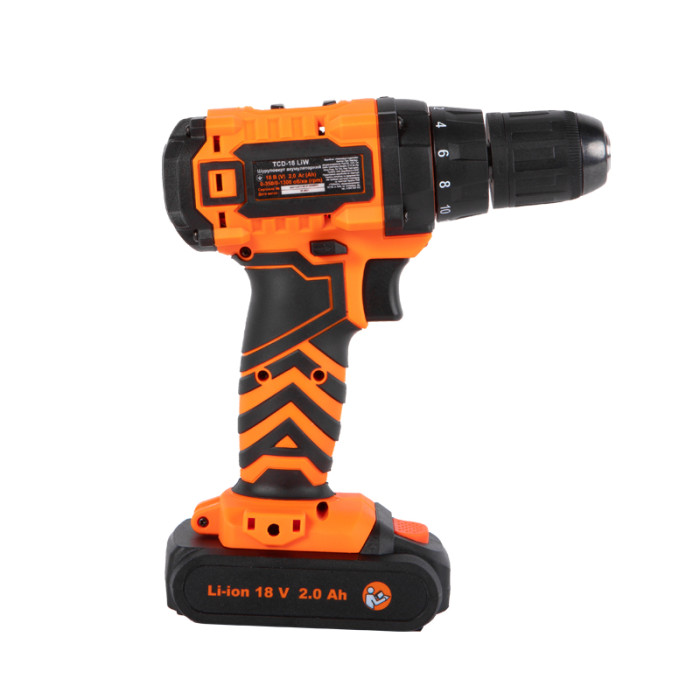 Шуруповерт Tekhmann TCD-18 LIW здатен працювати у двох швидкісних режимах – для операцій закручування/викручування (1-й режим) та свердління (2-й режим). Конструкцією муфти передбачена можливість вибору режиму обертання з ударом.