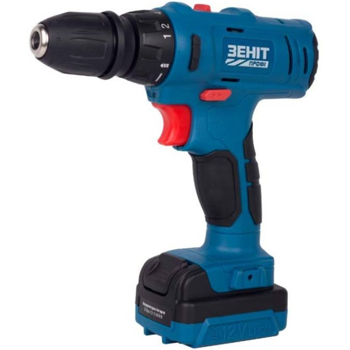 Шурупокрут-дриль акумуляторний Зеніт Профі ЗПША-12/15 DFR/B 12В 2х1.5А·год 25Нм 350·1500об/хв 1кг