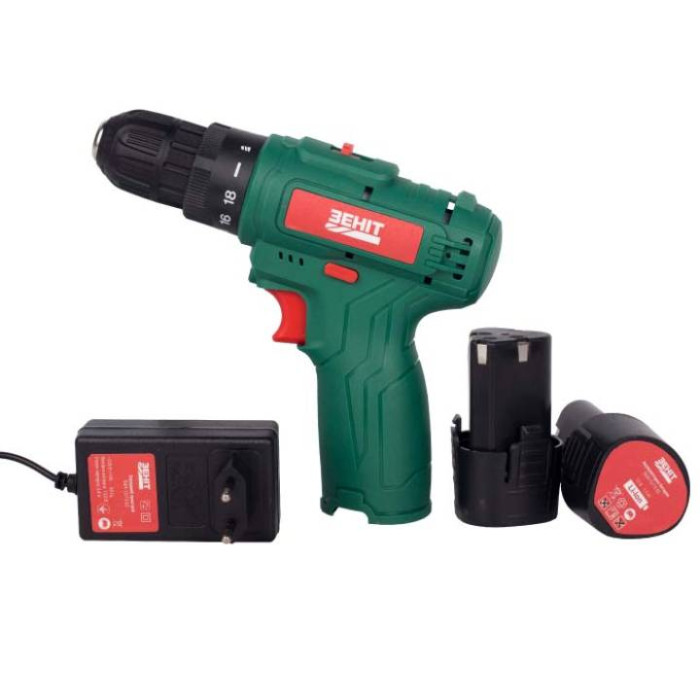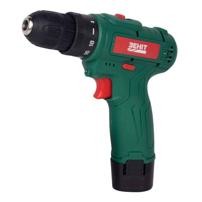 Шурупокрут-дриль акумуляторний Зеніт ЗША-12/15 S2 12В 2х1.5А·год 18Нм 350·1350об/хв 1кг кейс