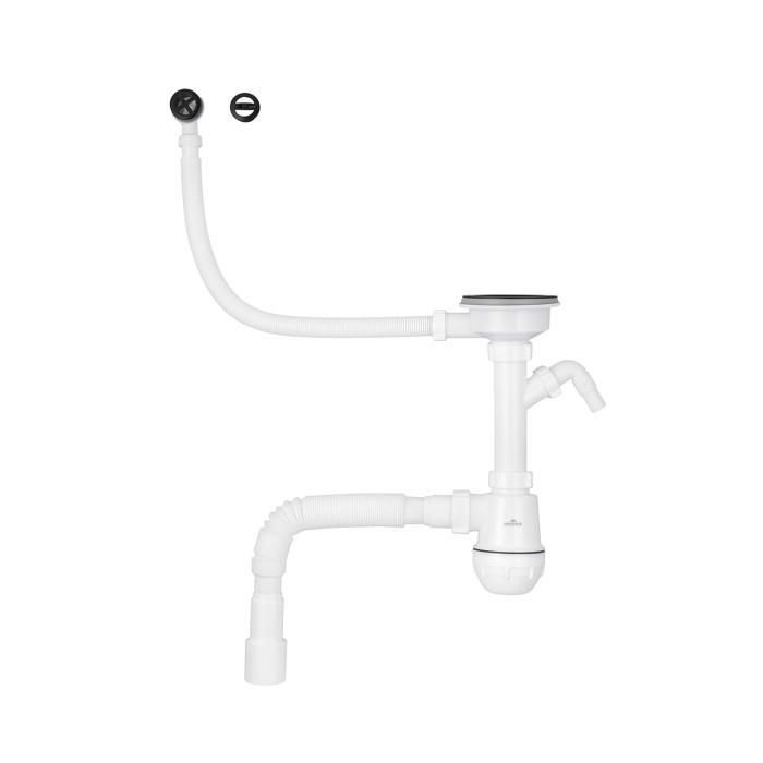 Особливістю цього сифону є наявність відводу для пральної машини та круглого переливу, який додає додаткову функціональність та безпеку, запобігаючи переливанню води. Сифон білого кольору з чорною зливною сіткою. Завдяки своєму універсальному дизайну та довговічності, цей сифон стане ідеальним вибором для будь-якої кухні. Крім того, виробник надає гарантію на 120 місяців, що є додатковим підтвердженням його якості та надійності.