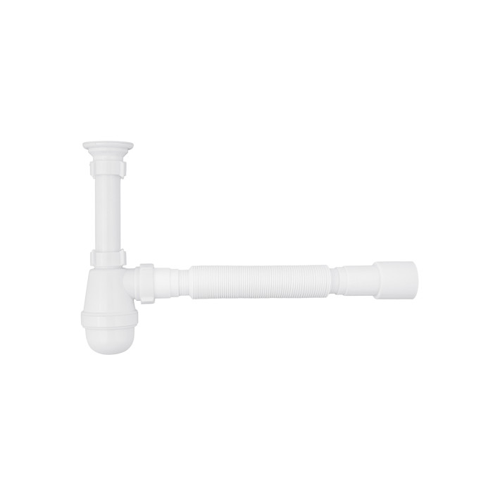 Сифон для раковини Agua TB07 1 1/4''х40/50 мм з різьбовим випуском пляшкового типу - це надійне та ефективне рішення для вашої ванної кімнати. Цей сифон комплектується гнучкою трубою 40х40/50 для зручного підключення до каналізаційної системи. Завдяки пропускній здатності стоку води через випуск у 28 л/хв, він забезпечує ефективне відведення води без заторів. Сифон має сітку випуску, гвинт і гайку з нержавіючої сталі, що гарантує його тривалість і надійність. Робочий діапазон температур від 0 до +95°C робить його відмінним вибором для будь-яких умов експлуатації. Виготовлений з високоякісного пластику та нержавіючої сталі, сифон має білий зовнішній вигляд з елементами сталевого кольору, що пасують до будь-якого інтер'єру. Цей сифон оснащений механічним переливом та мокрим затвором без мембрани, що робить його простим у використанні та догляді. Зі стандартним діаметром підключення 1 1/4" і діаметром патрубка в каналізацію 40/50 мм, він легко і надійно встановлюється для вашої зручності. Підключення до пральної машини не передбачено, але це надійний сифон без потреби в ревізії, що забезпечує його безпроблемну роботу у вашій ванній кімнаті.