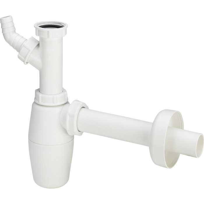 Напівсифон пляшковий, пластик, комплектація: декоративна розетка Ø 50 мм, під'єднання зливного шланга
