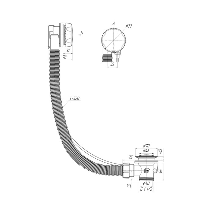 Сифон із напівавтоматичним переливом ANIplast ЕМ301EU