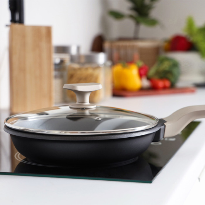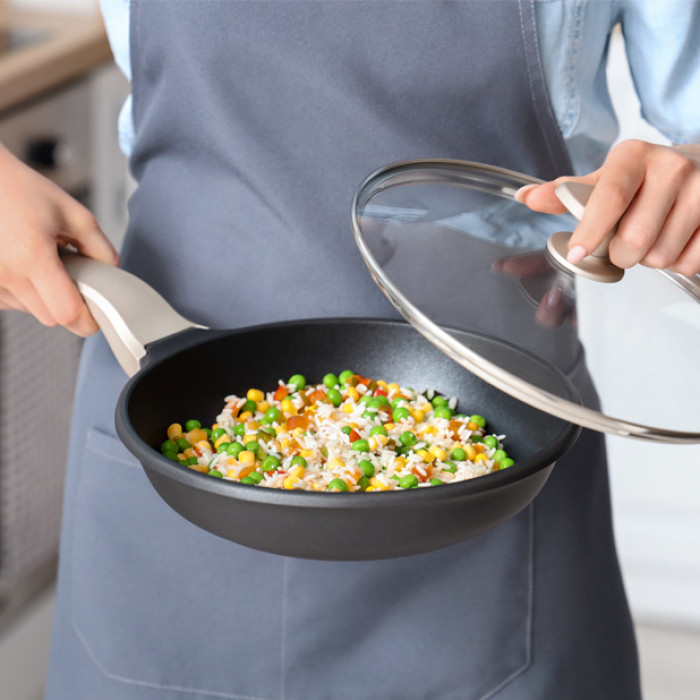 Сковорода Magio чудово підходить для приготування апетитних та соковитих страв для всієї родини. Привабливий дизайн доповнить інтер’єр вашої кухні та перетворить кожне приготування страви на задоволення. Ручка з покриттям Soft Touch зручно лежить у руці та гарантує надійне та безпечне використання. Посуд підходить для використання на всіх видах плит, у тому числі індукційних.