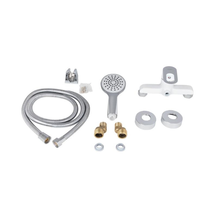 Змішувач, душовий шланг, лійка для ручного душу, кронштейн для ручного душу, кріплення.