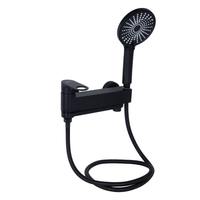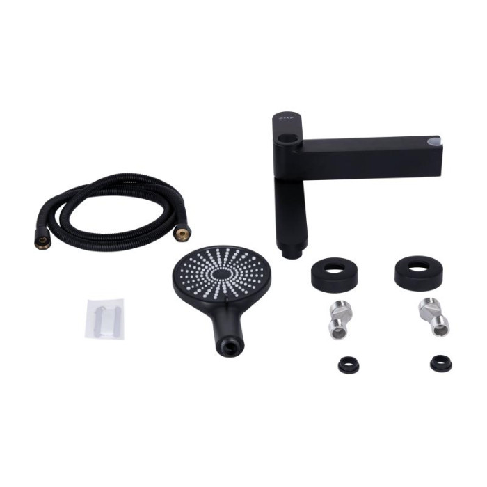 Змішувач для ванни Qtap Jay з поворотним виливом (з душовим гарнітуром) QTJAY260BLM45548 Black Matt