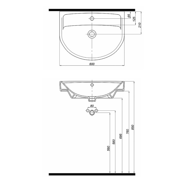 Умивальник KOLO STATUS 60см, з переливом, з отвором 2321600UA