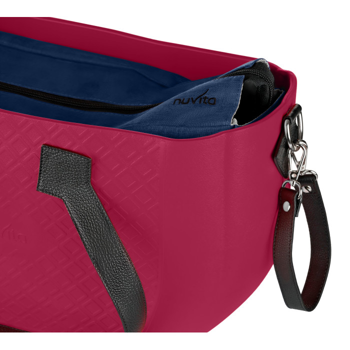 Сумка Nuvita MyMia ручки шкіра, килимок, ремені для коляски, малиново-чорний