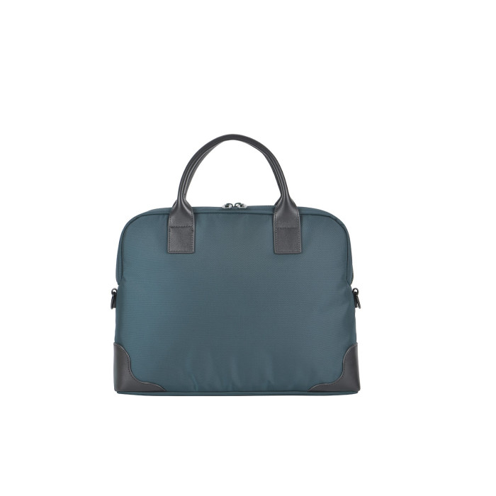 Сумка Tucano Fine 13"/14" поєднує елегантність і функціональність у щоденному використанні. Виготовлена з високотехнологічної тканини з переробленого пластику та оздоблена шкіряними вставками. Має два великі зовнішні відділення й подвійний внутрішній простір для ноутбука, документів і аксесуарів. М’яке відділення захищає лептоп від пошкоджень. Знімний плечовий ремінь забезпечує комфорт під час перенесення.