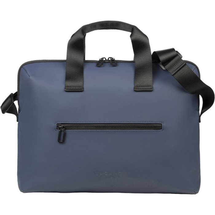 Сумка Tucano Gommo в стилі мінімалізм спортивного дизайну для ноутбука 15,6" і MacBook 16", виготовлена з прогумованого матеріалу. Має велике одинарне відділення з внутрішньою кишенею для ноутбука та зовнішньою кишенею для аксесуарів