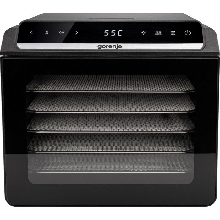 Сушарка для продуктів Gorenje 580Вт, піддонів - 6x1.5см, діаметр - 25см, макс - 75°С, дисплей, пластик+метал, чорний