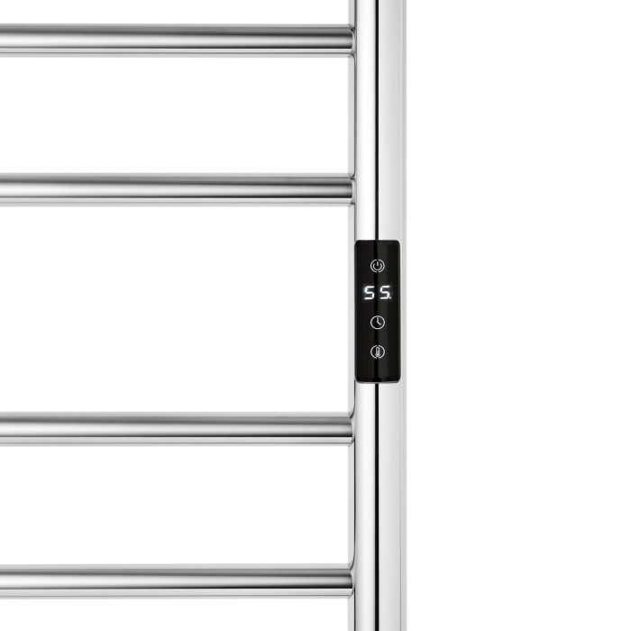 Сушарка має 10 секцій, які забезпечують ефективний розподіл тепла та швидке сушіння рушників. Завдяки сенсорному таймеру з діапазоном від 0 до 8 годин, ви можете легко налаштувати зручний режим роботи, зменшуючи витрати електроенергії. Максимальна температура нагріву — 60°C, що оптимально підходить для щоденного використання без ризику пересушування тканин.