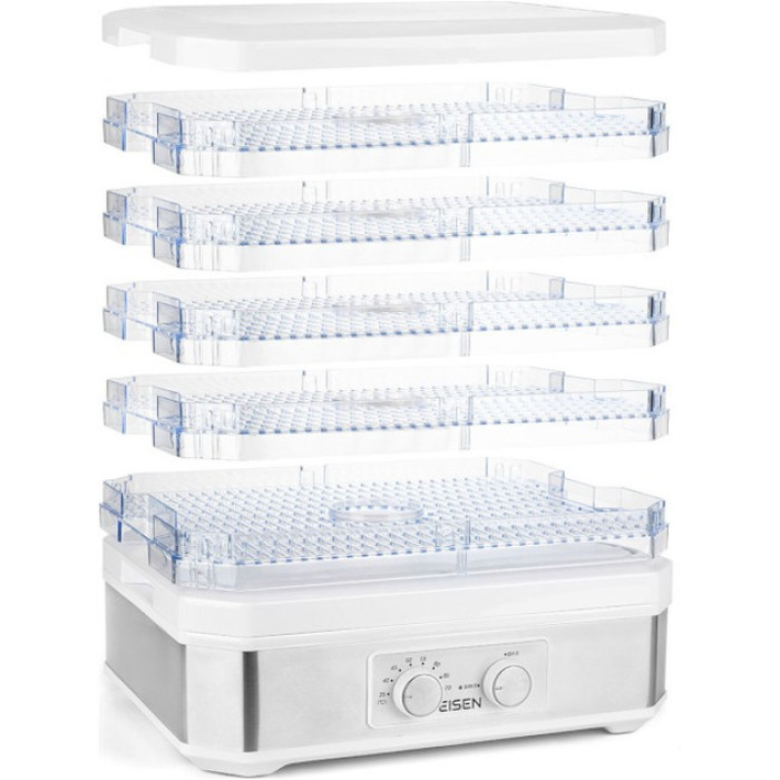 EISEN EFD-055W. Ця сушарка забезпечує швидке і якісне сушіння фруктів, овочів, ягід, м’яса, риби, хліба і багатьох інших продуктів з використанням мінімальних зусиль.