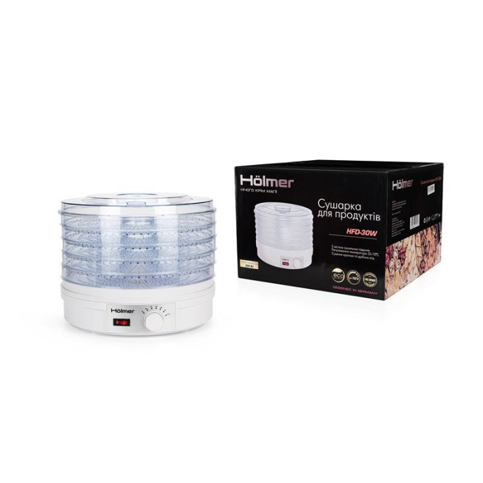 Сушка для овочів, фруктів і ягід Holmer HFD-30W– проста, економічна й надійна помічниця для тих, хто слідує сучасному тренду харчуватися смачно й корисно цілий рік.