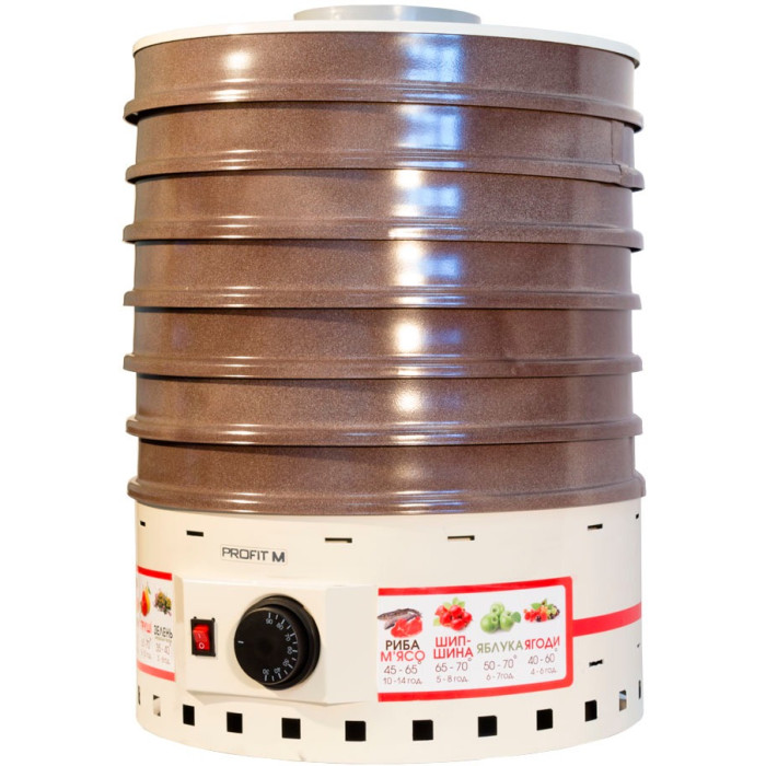 Це прилад який необхідний на вашій кухні. Сушарка зберігає приємний запах та аромат ваших улюблених фруктів та овочів, щоб ви могли насолоджуватися ними протягом усього року. Терморегулятор гарантує ідеальний процес сушіння. Металева конструкція корпусу та лотків, дозволяє сушити при високій температурі. Також додатковою перевагою являється великий об"єм сушильної камери.
