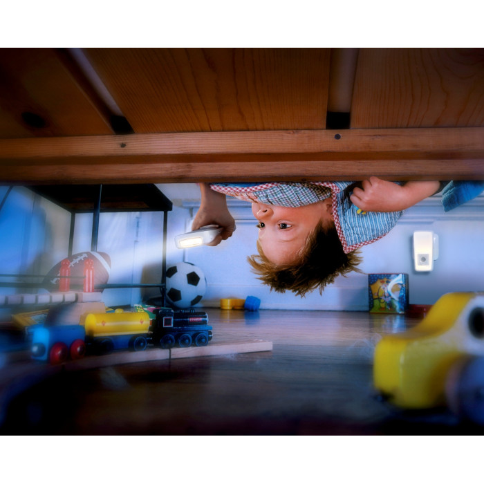 Світильник-нічник з акумулятором OSRAM LUNETTA TORCH INDUCTIVE 2 Вт 3000 K 10 лм поєднує настінний нічник із теплим білим світлом і знімний ліхтарик із холодним білим світлом. Прилад вставляється безпосередньо в розетку 220–240 В, має індукційне заряджання ліхтарика та працює разом із датчиком руху й освітленості для автоматичного нічного підсвічування коридорів, сходів і житлових приміщень.