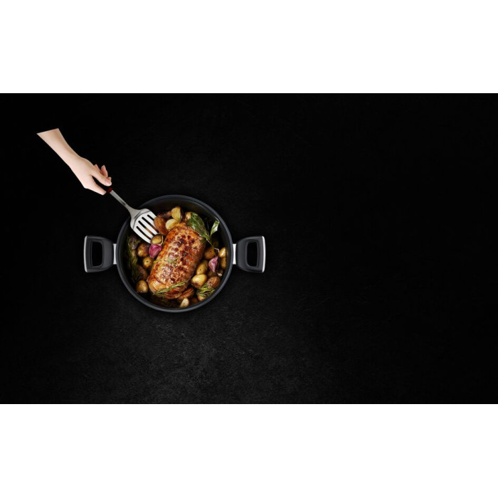 Шкварчання курки на сковороді, яке ні з чим не сплутаєш, дзвін посуду, швидке ковзання лопатки в потрібний момент ... Екстремальна кулінарія потребує посуду, здатного витримувати екстремальні умови. Поєднуючи абсолютно нове, стійке до подряпин антипригарне покриття TITANIUM - яке володіє винятковою довговічністю, що не допускає пригорання та може витримати навіть металеві аксесуари - з дуже товстою основою THERMO-FUSION ™ +, каструля Tefal Unlimited піднімає ефективність приготування на абсолютно новий рівень.
