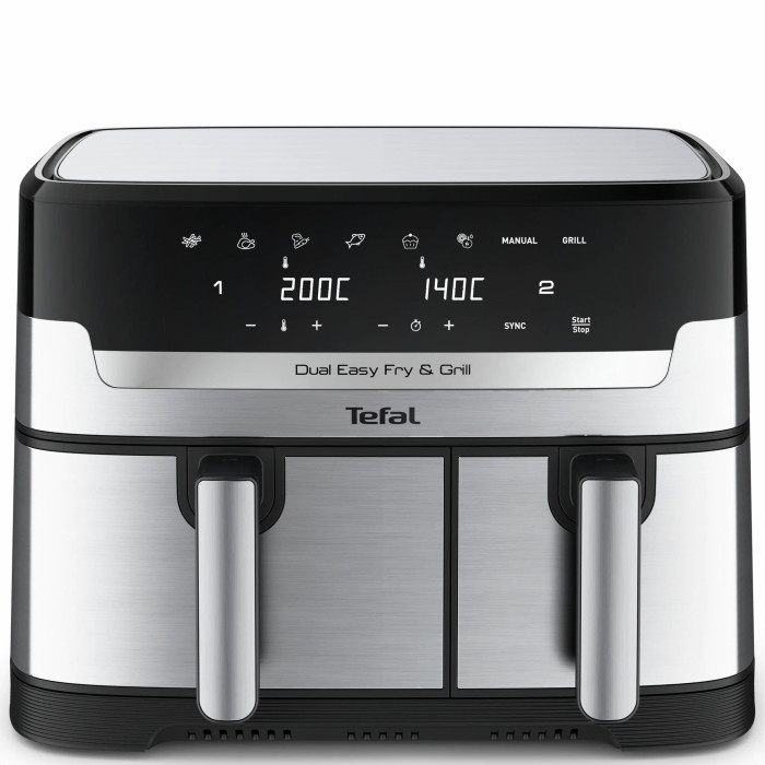 Мультипіч Tefal Dual EasyFry&Grill AirFryer, 2700Вт, чаша-5.2+3.1л, сенсорне керув., 2 чаши, гриль, пластик, сіро-чорний