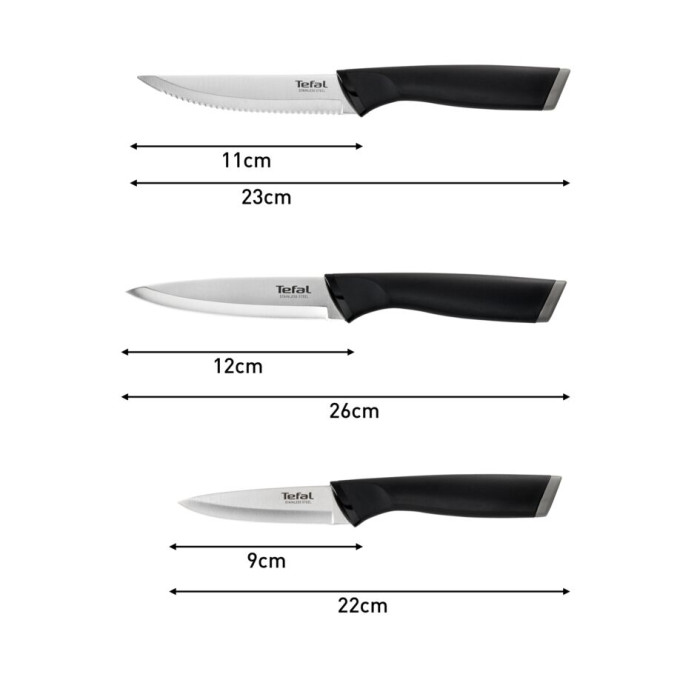 Tefal Набір ножів Essential, 3шт, нержавіюча сталь, пластик, чорний., нержавіюча сталь, пластик