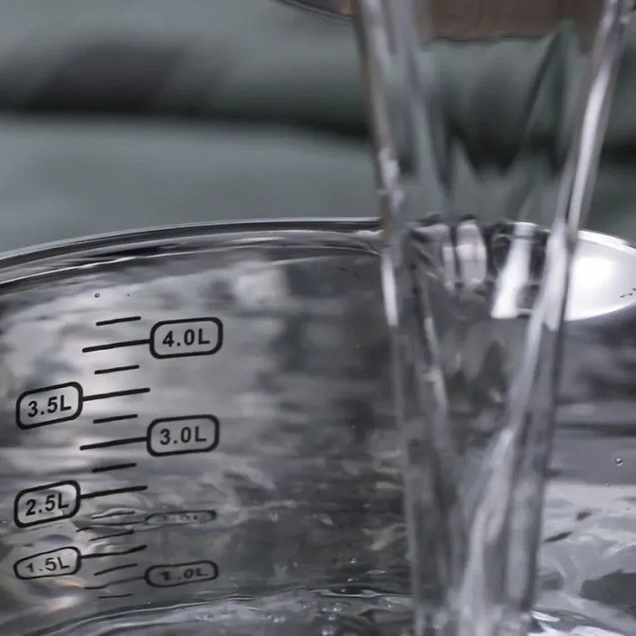 мірна шкала, отвір для зливу води, з отвором на ручці для підвісу, запатентована подвійна ручка