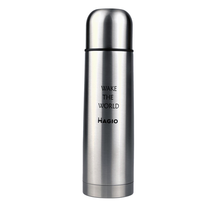 Вакуумний термос Magio — стильний і практичний. Стінки термоса зроблені з легкої, міцної і стійкої до пошкоджень харчової нержавіючої сталі. Двошарова вакуумна ізоляція стінок дає змогу зберігати напої гарячими або холодними впродовж довготривалого часу. Внутрішній пластиковий різьбовий корок надійно захищає від протікання.