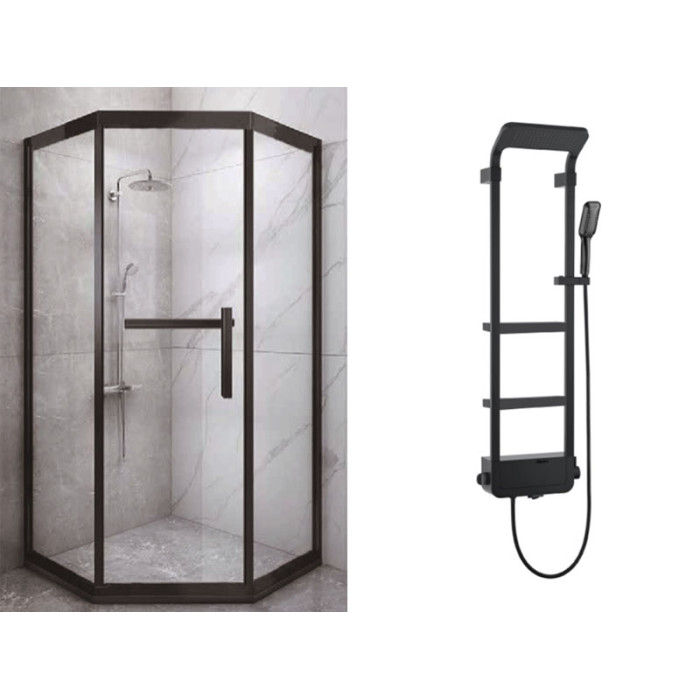 Tinto Душевая кабина 100*100 б/п, проф.черн.мат, стекло прозр.(8мм),раздв.внутрь 49022702 ASIGNATURA + Unique Душевая панель 85597802 черная ASIGNATURA