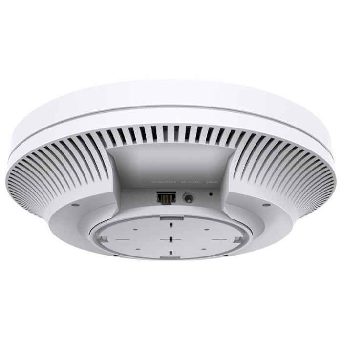 Бездротова дводіапазонна стельова точка доступу AX1800. Бездротова мережа AX1800 для середовищ з високою щільністю. Точка доступу Omada Wi-Fi 6 оснащена найновішими технологіями 802.11ax, такими як 1024 QAM, що дозволяє збільшити EAP.