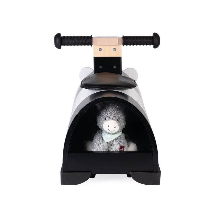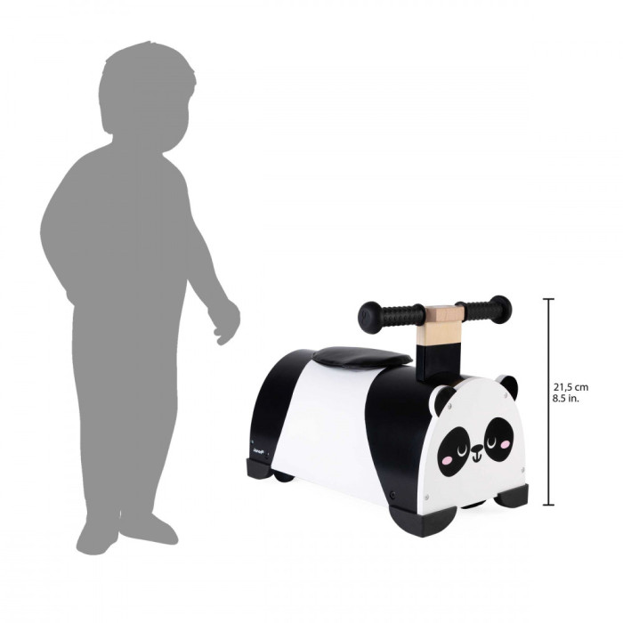 Привабливий дерев’яний толокар у вигляді панди стане гарним супутником для дитини під час прогулянки. Із ним дослідження світу стане ще більш цікавим і веселим, а розвиток навичок – ефективним. Завдяки багажнику, розташованому позаду толокара, діти зможуть брати із собою на прогулянку іграшки чи ляльок. Ергономічні ручки комфортні для малюків, а чотири силіконові насадки на краях толокара захищатимуть стіни й меблі у разі випадкових ударів. Іграшка призначена для дітей віком від 12 місяців.