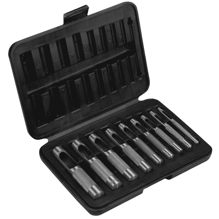 Набір пробійників круглих отворів TOPEX служить для вирубки отворів різного діаметра в деревині, пластмасі, лінолеумі та інших матеріалах, б'ючи молотком по голівці пробійника. Комплект упакований в зручний пластиковий кейс, що полегшує транспортування та зберігання.
