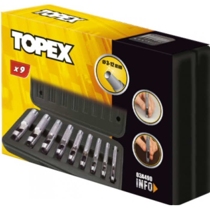 Topex Пробійник круглих отворів, крейцмейсель, набір 9шт, 3-12мм, 195мм, кейс
