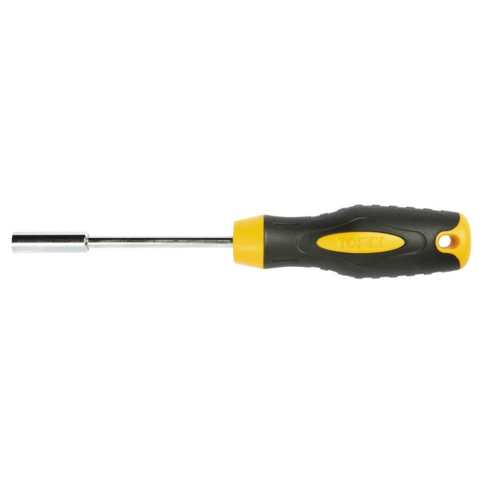 Викруткова рукоятка для наконечників TOPEX з довжиною жала 100 мм. Гніздо розміром 1/4”, завдяки магніту, міцніше тримає викрутковий наконечник. Ергономічна ручка з пластику, вкрите протиковзним матеріалом, забезпечує безпеку та комфорт під час експлуатації. Марка TOPEX адресована майстрам, які займаються дрібним ремонтом.