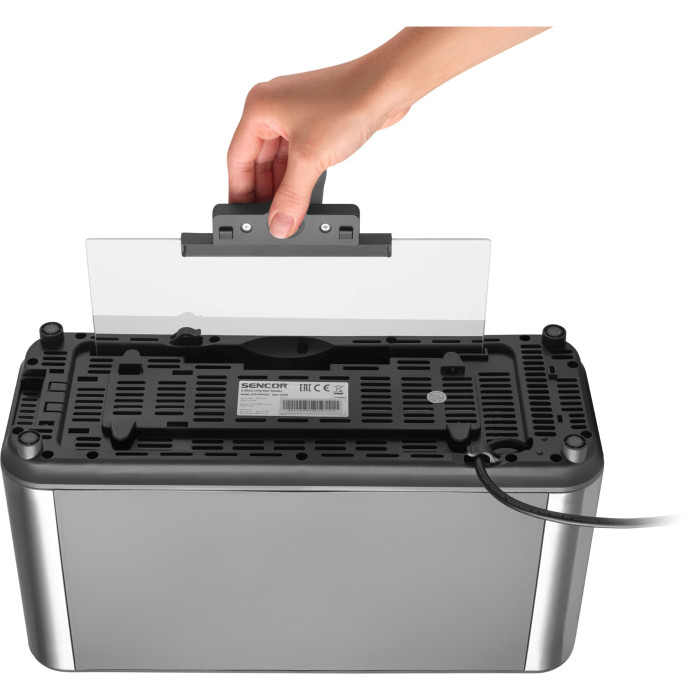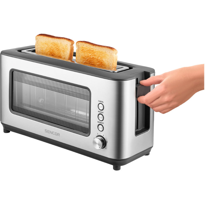 Тостер Sencor 1200Вт, підігрів, розморожування, з віконцем, нерж. сталь, сіро-чорний
