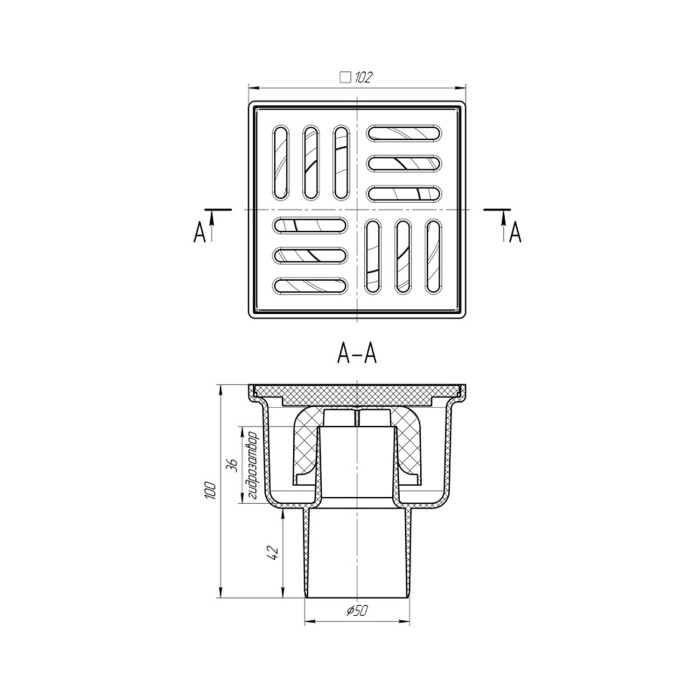 Трап ANIplast з вертикальним випуском 50 мм, з решіткою 10х10 см TA5204EU