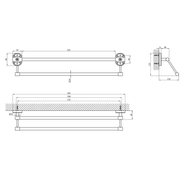 Подвійний тримач для рушників Kroner KRM Elbe - ACC2909 стане оригінальним доповненням ванної кімнати. Тримач для рушників виготовлений із міцного металу з хромованою поверхнею й має дві паралельні планки. Тримач прикрашений декоративними вставками. Довжина виробу 635 мм. Приховане кріплення дає змогу зберегти оздобу, а хромоване покриття запобіжить утворенню корозії та бруду. Тримач для рушників кріпиться на стіні на бажаній висоті.