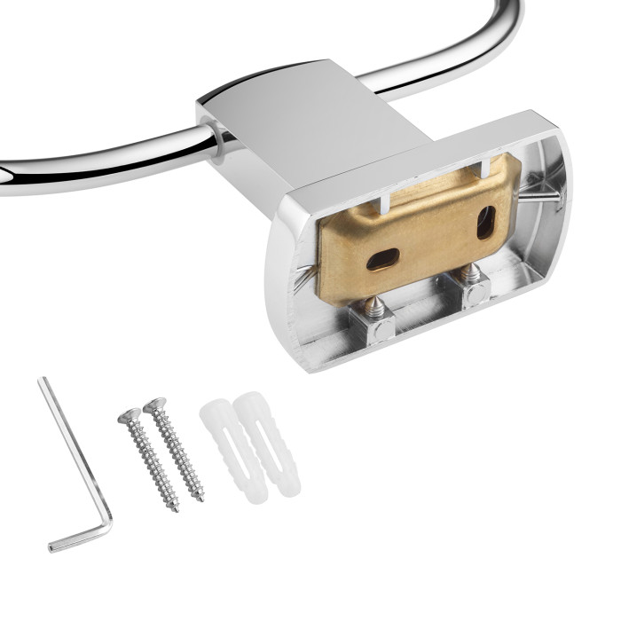 Тримач для рушників Kroner KRM Graz - C95606 — стильний і практичний аксесуар для вашої ванної кімнати. Кільцеподібна конструкція з цинку забезпечує зручне розміщення рушників, а глянцева хромована поверхня додає виробу вишуканого блиску та захищає від корозії. Завдяки настінному монтажу тримач допомагає заощадити простір, зберігаючи ванну кімнату охайною та організованою. Надійне кріплення на шурупах гарантує стабільність під час використання.