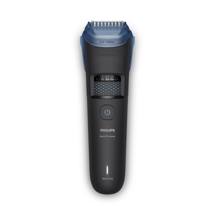 Тример Philips Series 5000 забезпечує максимальну точність і комфортне підстригання бороди завдяки металевим самозаточувальним лезам і 40 налаштуванням довжини з кроком 0,2 мм. Інноваційний колектор для волосся, технологія BeardSense та насадка Lift & Trim гарантують рівномірний результат, навіть на густій бороді. Водонепроникний корпус, до 100 хвилин автономної роботи та зручна підставка для заряджання роблять догляд ще простішим.