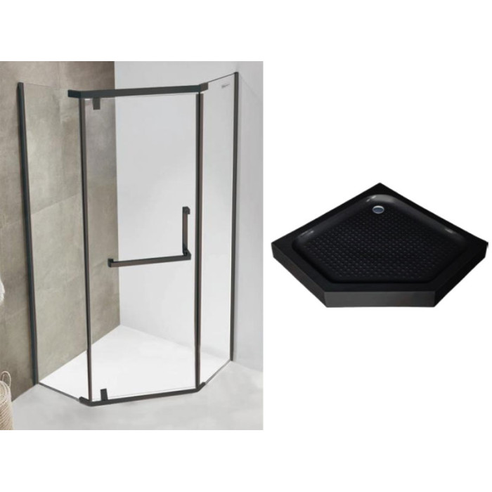 Душевая кабина ASIGNATURA Turia 90*90 проф.чорний мат, скло прозор, (8 мм), розпашна з піддоном чорний (39020402+ 39833007)