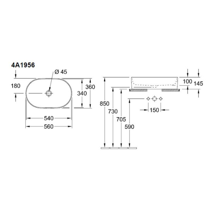 Умивальник VILLEROY & BOCH Collaro для встановлення на стільницю, без переливу 560*360 мм, білий 4A195601