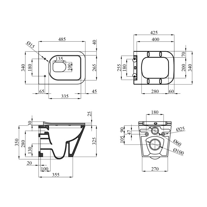 Виготовлений з непористого фаянсу, унітаз стає стійким до забруднення та неприємних запахів, що робить його легким у догляді. Габарити відповідають кресленню з можливими відхиленнями ±2%. Можливі нерівності поверхні зумовлені технологією сушіння.
