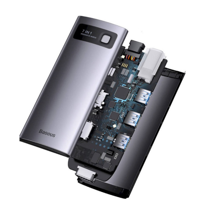 USB-хаб Baseus Metal Gleam Series 7-in-1 Multifunctional Type-C HUB Docking Station Gray (Type-C to HDMI*1+USB3.0*3+PD*1+VGA*1+RJ45*1)