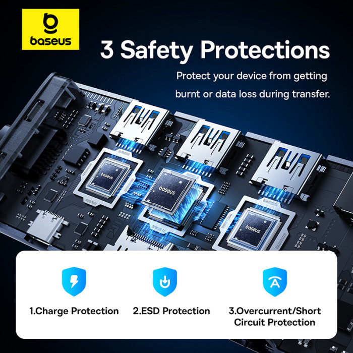 − Кардридер для карт пам'яті TF та SD.ПОРТИ HDMI/VGAЗавдяки HDMI та порту VGA користувачі можуть дивитися фільми, переглядати веб-сторінки, користуватися соціальними мережами, слухати музику, використовувати програми Google Play, читати книги, підключатися до цифрового телебачення — і все це на екрані власного телевізора.3 X USB 3.0 5 Гбіт/СКонцентратор Baseus UltraJoy Series 10-Port HUB Docking Station вирішує проблему занадто малої кількості портів, що дозволяє легко підключити кілька пристроїв, таких як:− зовнішній жорсткий диск, USB-накопичувач, миша, клавіатура, USB-навушники, веб-камера.HUB Baseus дає можливість дивитися фільми/фотографії, читати документи із зовнішнього накопичувача без підключення до Інтернету телефоном, наприклад, у літаку.ПОРТ AUX — АУДІОПОРТЗавдяки роз'єму AUX ви можете слухати улюблену музику в навушниках у чудовій якості без шумів і перешкод.ПОРТ RJ45Адаптер USB-хаб Baseus оснащений портом RJ45, який забезпечує швидший та стабільніший доступ до Інтернету. Він підтримує мережеве з'єднання 10/100/1000 Мбіт/с, яке набагато ефективніше за бездротові мережі. Відмінно підходить для завантаження фільмів, завантаження великих файлів або ігор.TF/SDКарти TF/SD на сьогоднішній день є найпопулярнішими на ринку та використовуються у смартфонах, фотоапаратах, відеокамерах, планшетах та різних плеєрах.Концентратор USB-хаб Baseus UltraJoy Series 10-Port HUB Docking Station дозволяє розширити пристрій за рахунок двох додаткових слотів. Він збільшує обсяг пам'яті та простору. Також він дозволяє копіювати фотографії, відео, файли з карток пам'яті на телефон для перегляду та редагування.ЗАРЯДКАНе бійтеся жертвувати єдиним портом USB-C. Завдяки наскрізному порту, що входить до комплекту, ви можете заряджати свій пристрій, використовуючи інші порти.Підключивши адаптер Baseus до відповідного зарядного пристрою, ви дуже швидко відновите енергію на вашому пристрої без втрати якості, але з додатковими портами.ДИЗАЙНБагатофункціональний концентратор Baseus UltraJoy Series 10-Port HUB Docking Station має компактний розмір та витончену форму. Підключення до ноутбука здійснюється за допомогою невеликого кабелю з роз'ємом USB-C на кінці.