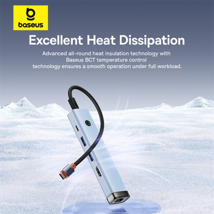 − Порт RJ45 забезпечує постійне підключення до Інтернету.ПОРТ HDMIЗавдяки порту HDMI користувачі можуть дивитися фільми, переглядати веб-сторінки, користуватися соціальними мережами, слухати музику, використовувати програми Google Play, читати книги, підключатися до цифрового телебачення — і все це на екрані власного телевізора.2 X USB 3.0 5 Гбіт/СКонцентратор Baseus UltraJoy Series 5-Port HUB AIR вирішує проблему занадто малої кількості портів, що дозволяє легко підключити кілька пристроїв, таких як:− зовнішній жорсткий диск, USB-накопичувач, миша, клавіатура, USB-навушники, веб-камера.HUB Baseus дає можливість дивитися фільми/фотографії, читати документи із зовнішнього накопичувача без підключення до Інтернету телефоном, наприклад, у літаку.ПОРТ RJ45Адаптер USB-хаб Baseus оснащений портом RJ45, який забезпечує швидший та стабільніший доступ до Інтернету. Він підтримує мережеве з'єднання 10/100/1000 Мбіт/с, яке набагато ефективніше за бездротові мережі. Відмінно підходить для завантаження фільмів, завантаження великих файлів або ігор.ЗАРЯДКАНе бійтеся жертвувати єдиним портом USB-C. Завдяки наскрізному порту, що входить до комплекту, ви можете заряджати свій пристрій, використовуючи інші порти.Підключивши адаптер Baseus до відповідного зарядного пристрою, ви дуже швидко відновите енергію на вашому пристрої без втрати якості, але з додатковими портами.ДИЗАЙНБагатофункціональний концентратор Baseus UltraJoy Series 5-Port HUB AIR має компактний розмір та витончену форму. Підключення до ноутбука здійснюється за допомогою невеликого кабелю з роз'ємом USB-C на кінці.