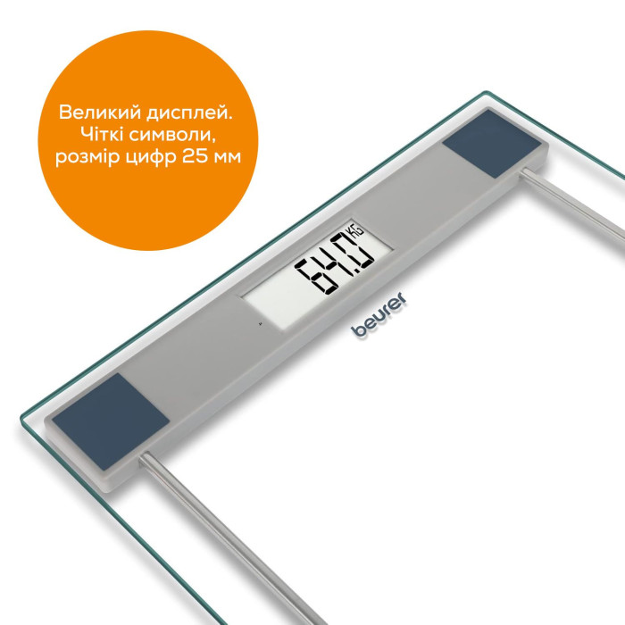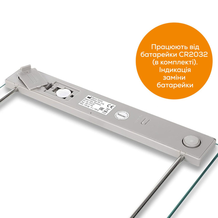Ваги Beurer підлогові, 150кг, 1хCR2032, скло, срібний